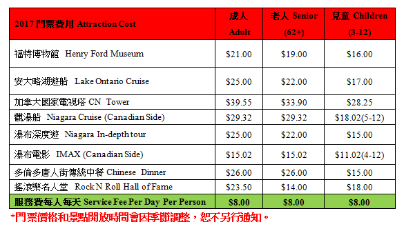 下車地點: 207 W Cermak Rd. Chicago, IL 60616 或 O’Hare 国际机场(請預定7:00PM后航班。)